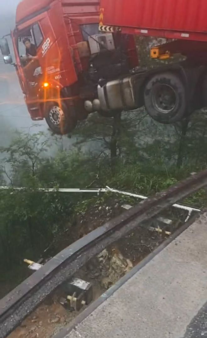 事发时,桥上有一辆货车,所幸车内人员已被及时救出,无生命危险。桥下共有三辆施工车辆,属于附近村庄施工所用。经无人机勘查确认,车内均无人,整体事件未造成人员伤亡。