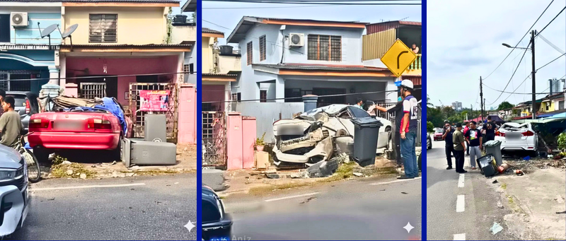 新山百万镇柏马斯1路住宅区,今日下午约4时发生罕见车祸。至少3辆轿车疑先发生碰撞,随后失控撞向民宅,现场一片狼藉,伤者人数目前不明。