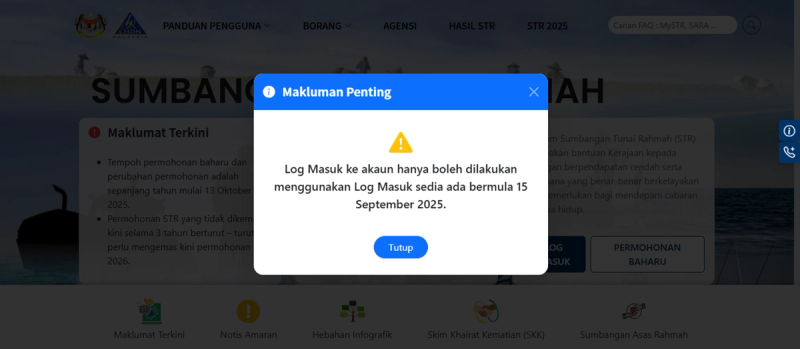 2026年度慈悯援助金(STR)从今天(2025年10月13日,周一)起正式开放申请。政府官网呼吁,所有符合资格的民众尽快行动,别错过这笔救急现金。无论你是首次申请,还是老户,都得重新注册MySTR账户