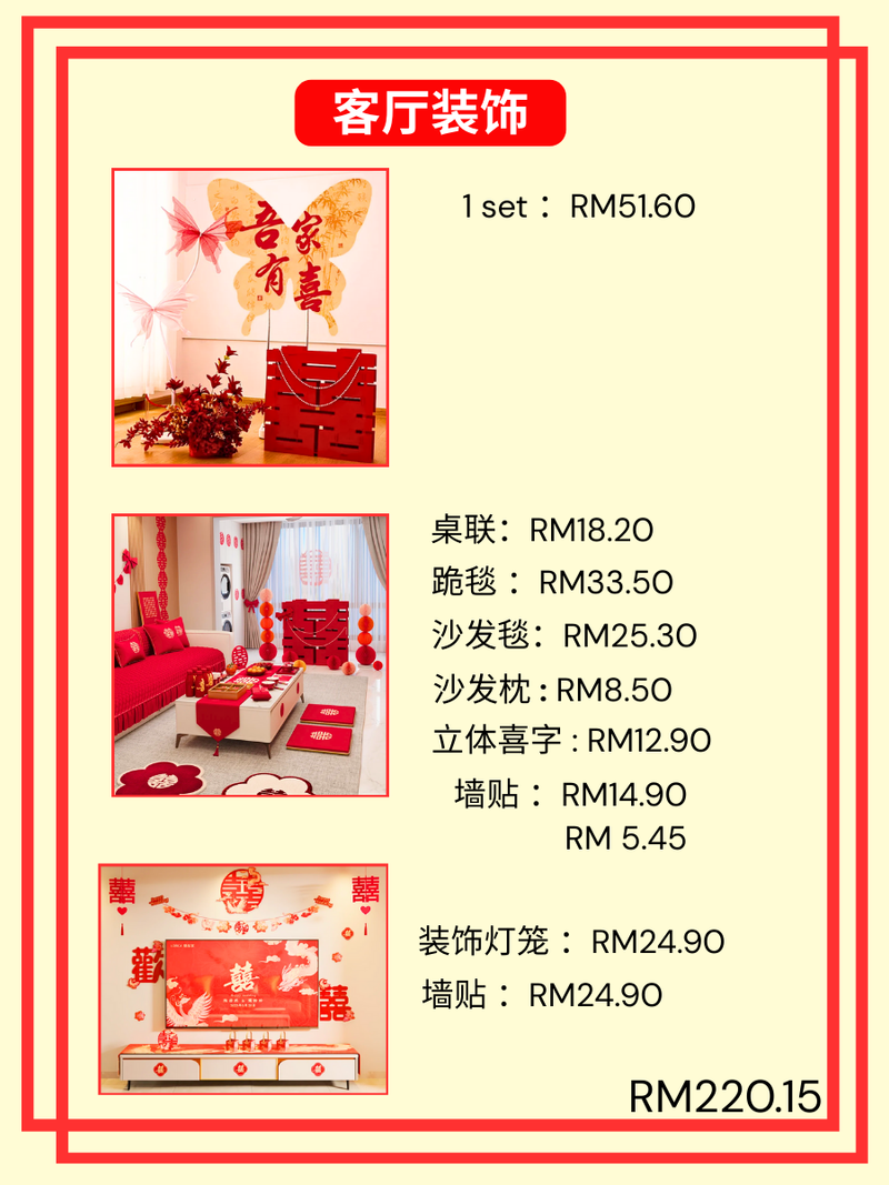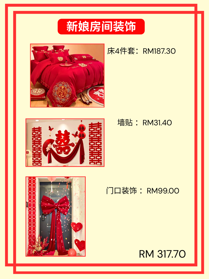适用于 马来西亚 ( 女方出嫁娘家布置 / 男方家布置 / 婚房 )