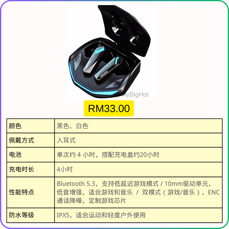Lenovo GM2 Pro 可以双耳通话、一秒切换游戏模式,兼容所有型号的手机和电脑。