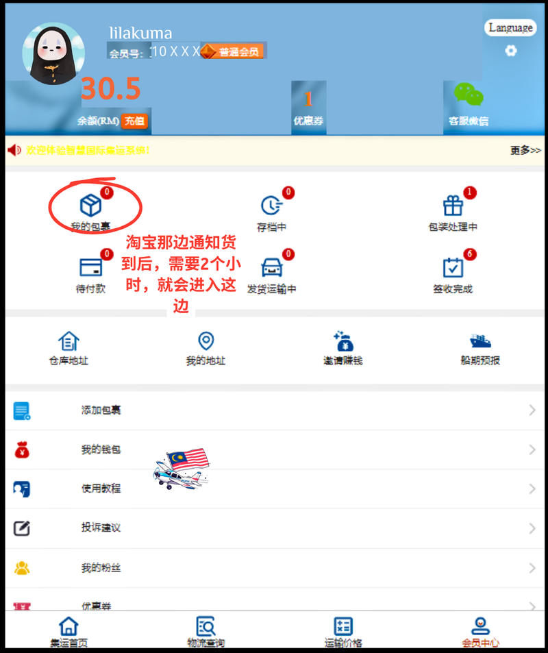 整个流程是:淘宝设施地址(放代运仓库)- 代运仓库会寄给你 。通常淘宝寄中国国内是免邮费的,所以只需付 RM12.50 就能送到家了。