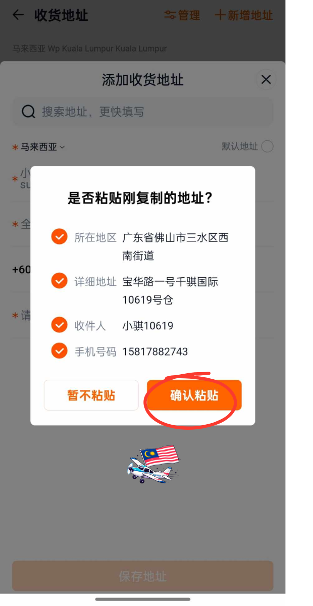 打开淘宝App - 我的淘宝 - 设置 - 收货地址 - 新增地址 - 选择粘贴