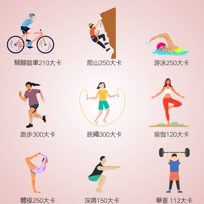 - 跳繩:300 Kcal