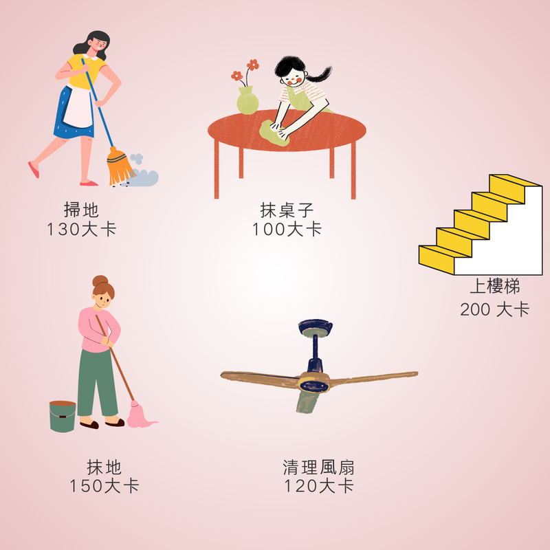 - 掃地:130 Kcal