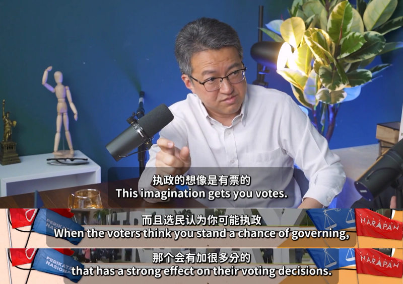 他在节目中表示,赢得选举的一个重要因素,是要让选民“想象得到”该政党有执政的可能性。只要选民相信这个政党“有机会执政”,就会获得多数支持。