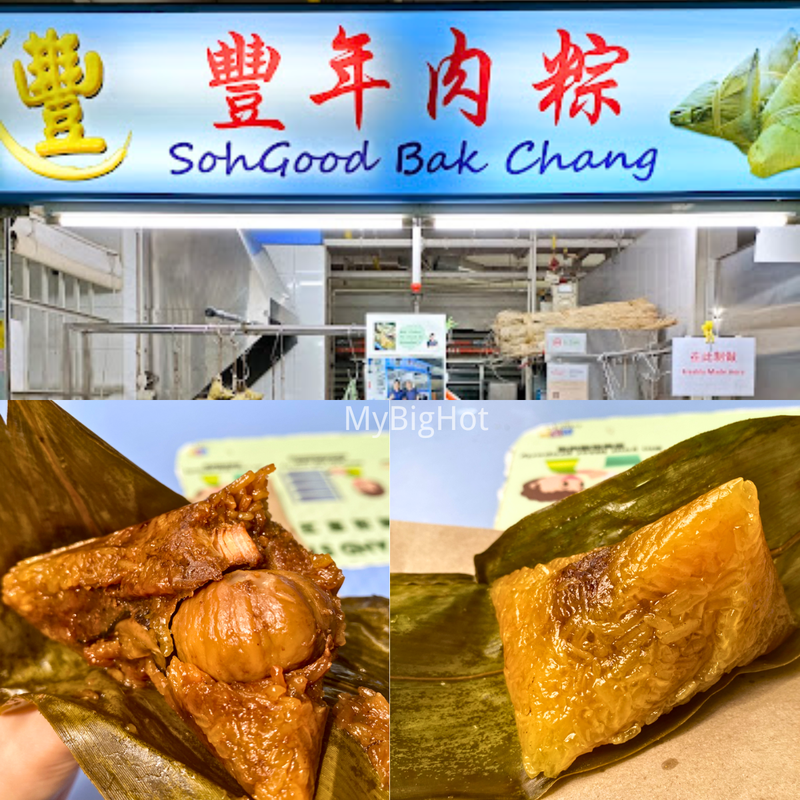 这家大隐隐于坡卧虎藏龙的Chinatown Complex Market & Food Centre,和煮炒档口混在一起。每颗粽子有四五大块五花肉+咸蛋黄+香菇+栗子,料比米多。