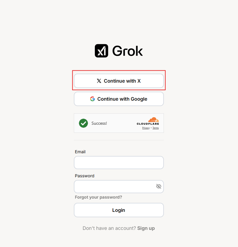 按照提示,使用你的 X 账号(可通过邮箱、Google 或 Apple 登录)完成认证。