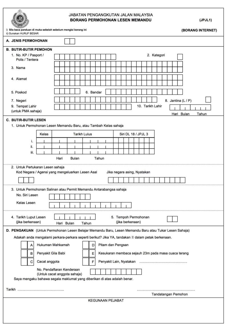6. 到附近 JPJ 提交收据 和 填好的JPJ L1 表格