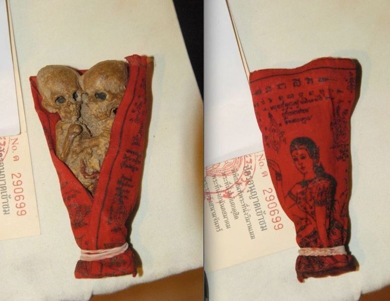 古曼童的起源可以追溯到泰国古老的巫术传统,融合了泛灵论和黑魔法元素。根据古代泰国手稿记载,早期古曼童的制作过程颇为骇人:巫师从母亲子宫中取出未出生的胎儿,在墓地进行仪式,烘烤胎体并念诵咒语。完成后,胎体被涂上漆料和金箔,制成所谓的“金童”。这种做法因其残酷性现已被禁止,且被视为非法。如今,古曼童多以黏土、塑料或其他材料制成的雕像出现,由僧人通过仪式加持,保留了其神秘力量的象征意义。