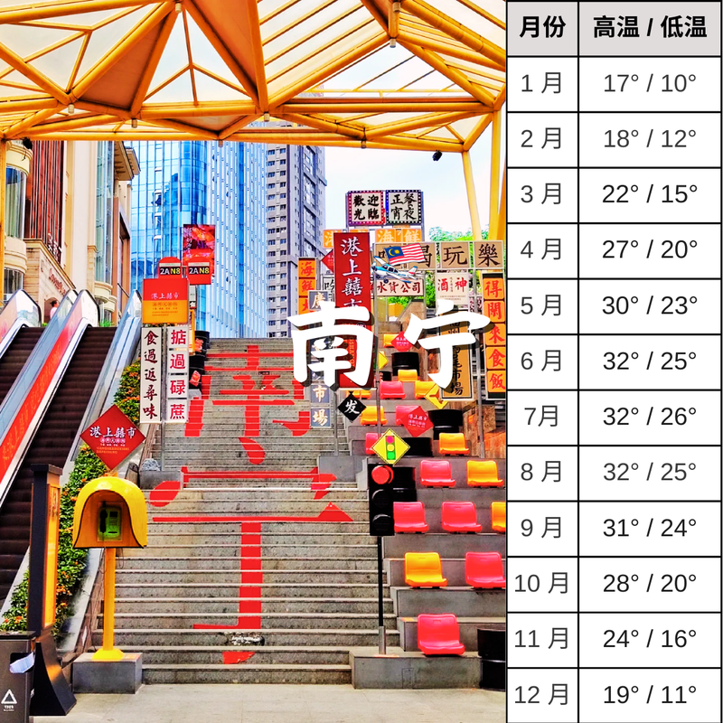 南宁的最佳旅游时间一般是在春秋两季,即 3月到5月 和 9月到11月。此时南宁的气候宜人,平均气温在20℃左右,既不太热也不太冷,十分舒适。此外,南宁的阳光充足,雨水适中,空气湿润,草木葱郁,鲜花盛开,是旅游的好时节。