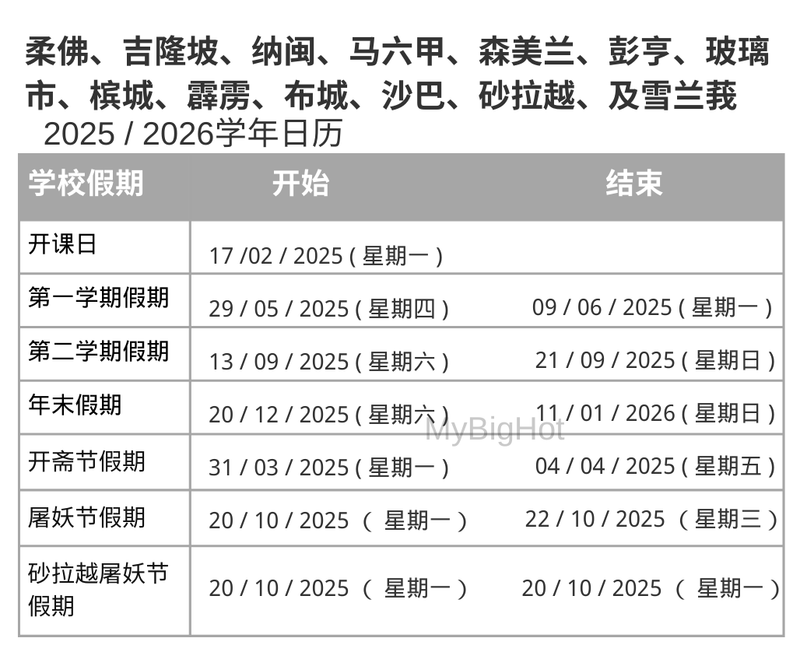 马来西亚教育部已公布2025/2026学年的学校假期安排,以下是详细信息,供家长和学生参考,以便提前规划。2025/2026年的学校假期只有44天。