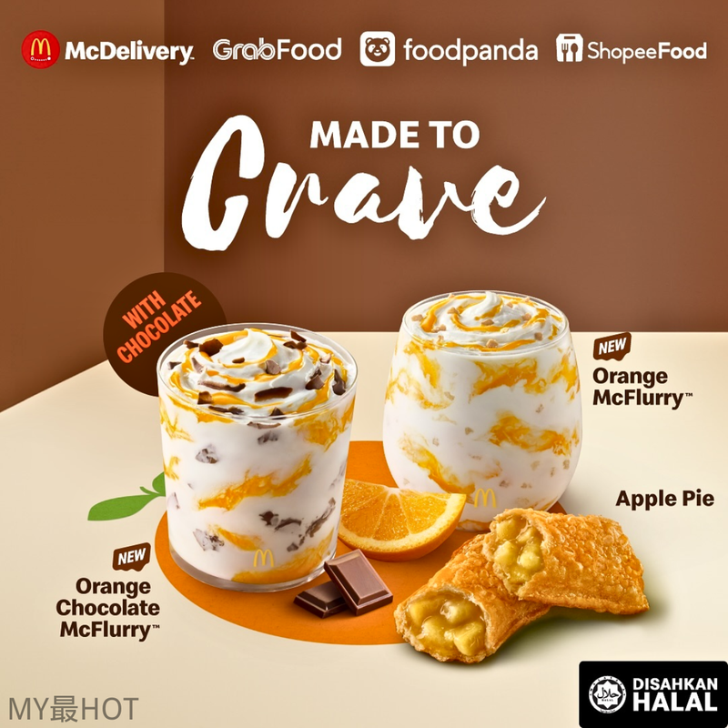 Mc Donald's 在2025新年推出了【橘子Mc Flurry巧克力橘子Mc Flurry黑胡椒鸡肉汉堡黑胡椒牛肉汉堡】