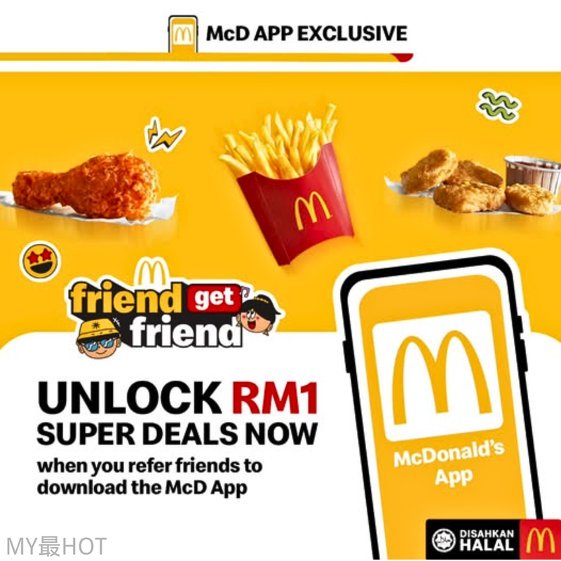 MCD App只要你推荐朋友下载就能获得RM1 Super Deals,并为你朋友们解锁 Oreo® McFlurry™ 50% 的折扣。
