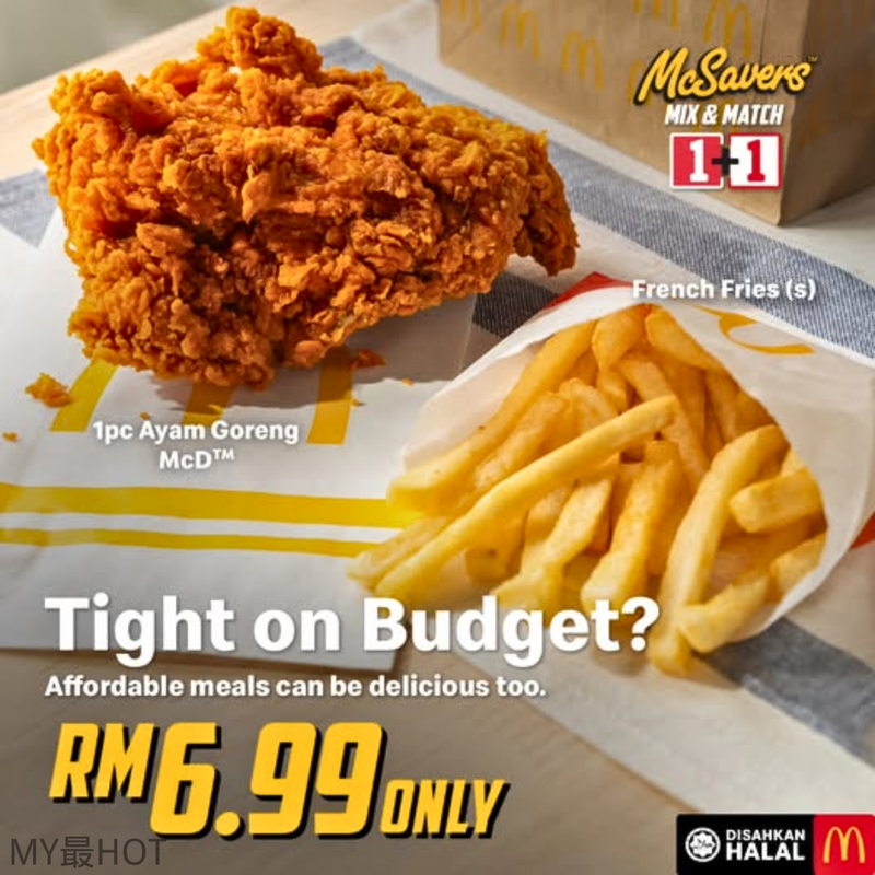 Mc Donald's 的 Mix n Match 增加了炸鸡啦~大家可以用 RM 6.99 就能享有炸鸡搭配薯条或饮料了