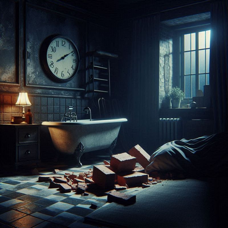 更奇怪的事情接踵而至。一天深夜,我们已经躺在床上准备入睡,突然“砰!”一声闷响从浴室传来。那块浴缸底部的砖头,竟然自己掉了出来,重重地砸在瓷砖地面上。