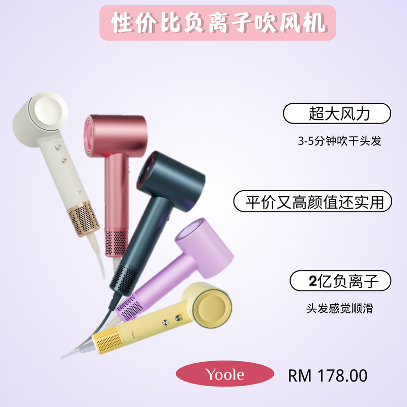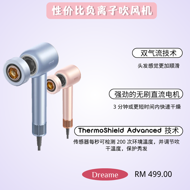 🔹 推荐理由:不到RM250就能享受高速吹风+护发体验,新手或备用机超值得!