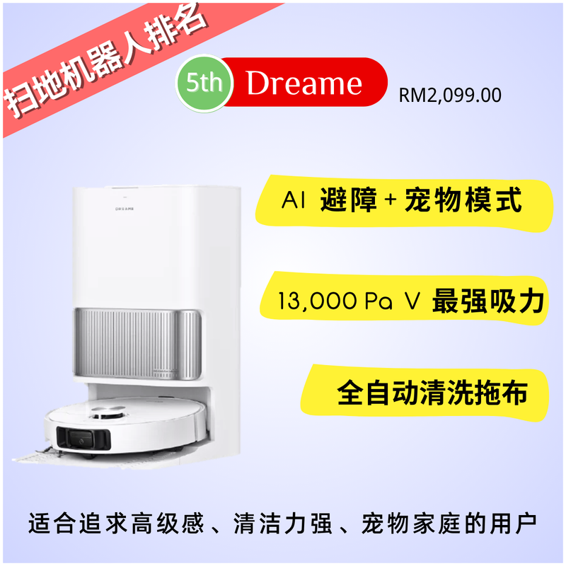 | > RM3,000 | 全自动旗舰,真正一键搞定 |