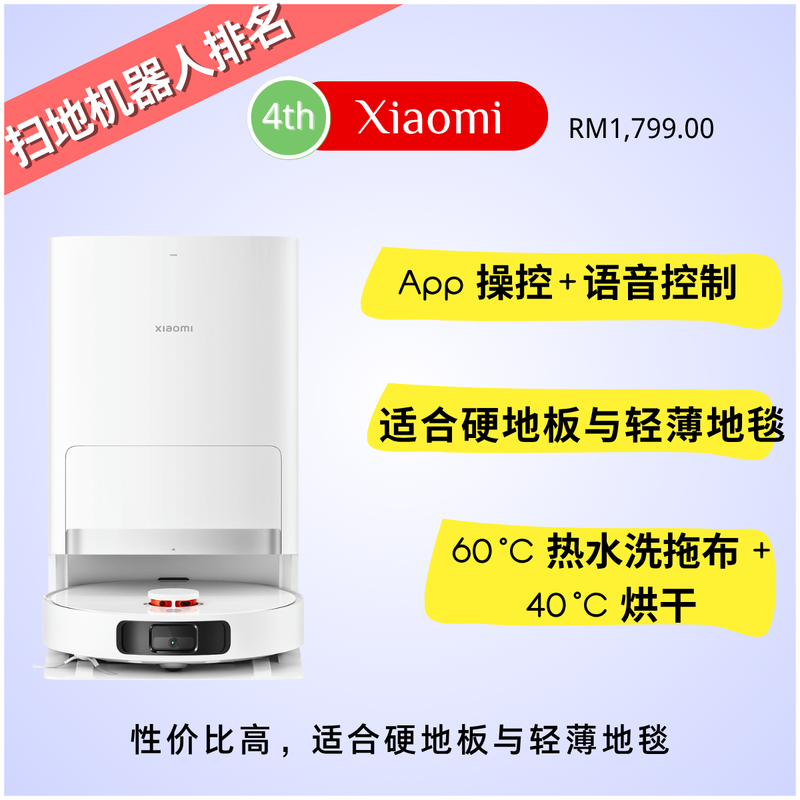 | 第 4 名 | 小米(Xiaomi) | 作为一家中国科技巨头,小米也进入了全球扫地机器人出货量前五,其市场份额约为9.7%。 |