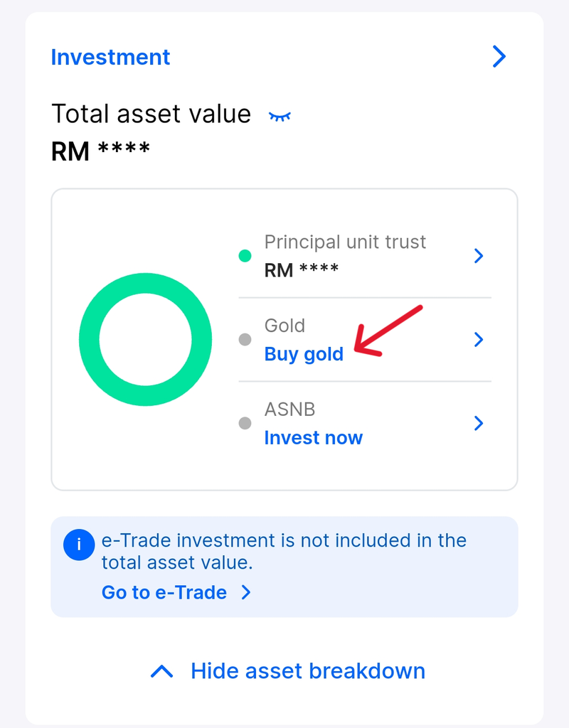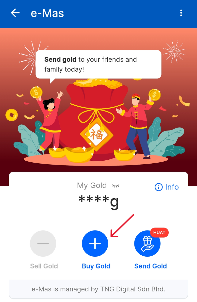 4. 点击 Buy Gold 并投资最低RM10的e-Mas黄金。
