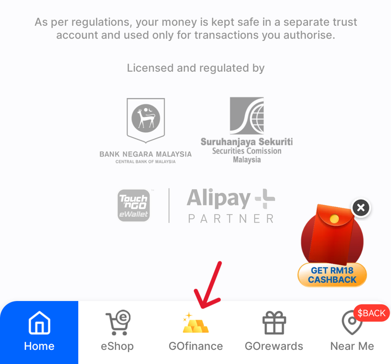 1. 打开你的Touch 'n Go eWallet应用程序,点击底部的 GOfinance 图标