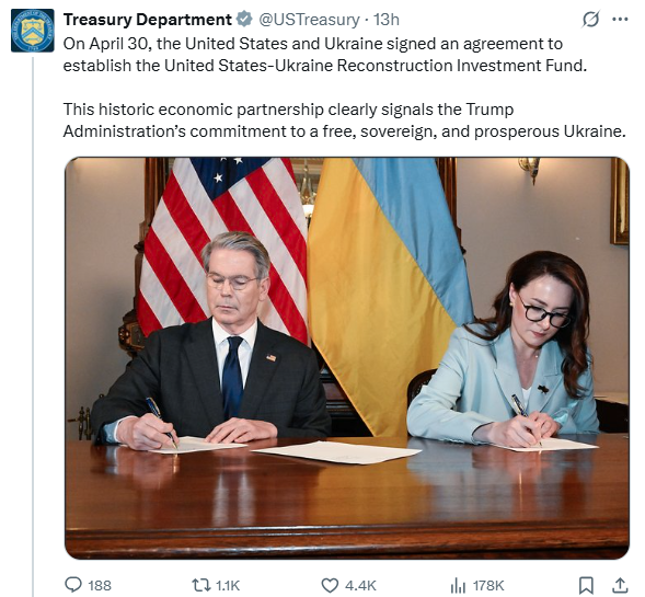 据《基辅独立报》报道,乌克兰第一副总理兼经济部长尤利娅·斯维里登科与美国财政部长斯科特·贝森特在华盛顿完成签约。协议规定,联合基金由美乌各出资50%,收入免税,仅来自新发放的项目许可证,现有项目不受影响。乌克兰保留对矿产、底土和国有企业(如国家核电公司和Ukrnafta)的完整主权,开采地点由基辅最终决定,协议严格遵循乌克兰宪法,且不干扰其加入欧盟的进程。斯维里登科强调,这是一份平等伙伴关系的协议,乌克兰无需承担债务义务。